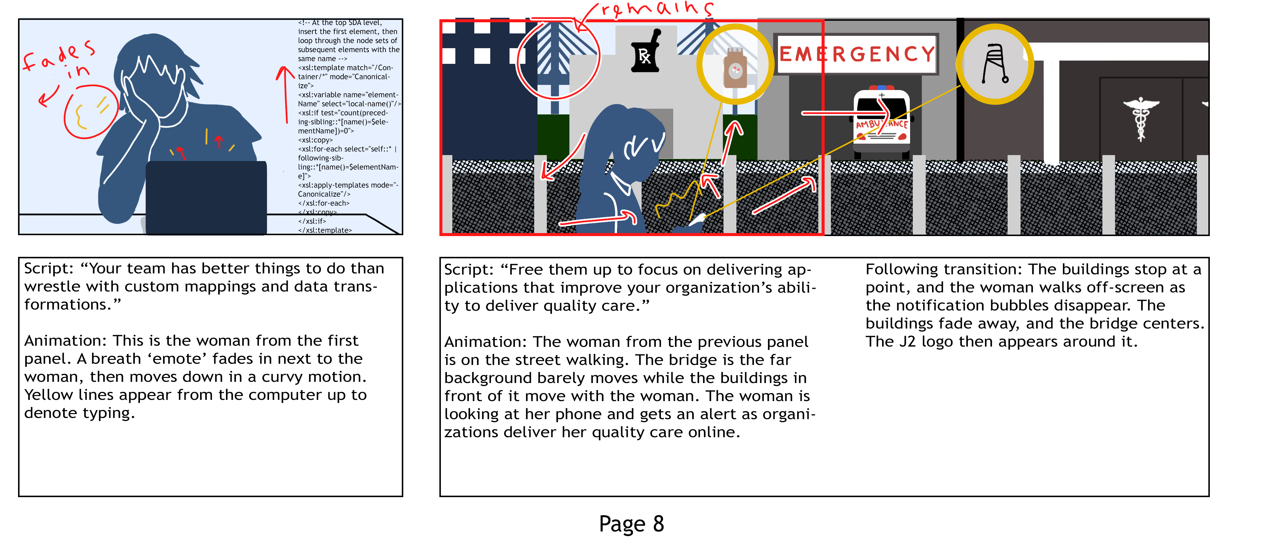 Storyboard animation panels using Adobe Photoshop and Illustrator